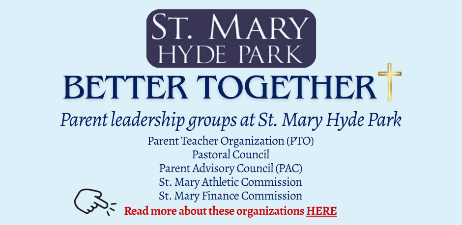 The goal of the St. Mary PTO is to promote a spirit of cooperation among the parents, teachers, and staff of the school. Through its work throughout the school community, the PTO enhances the quality of education for St. Mary School students.